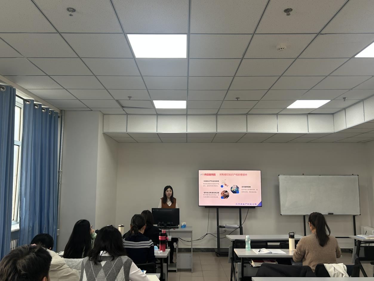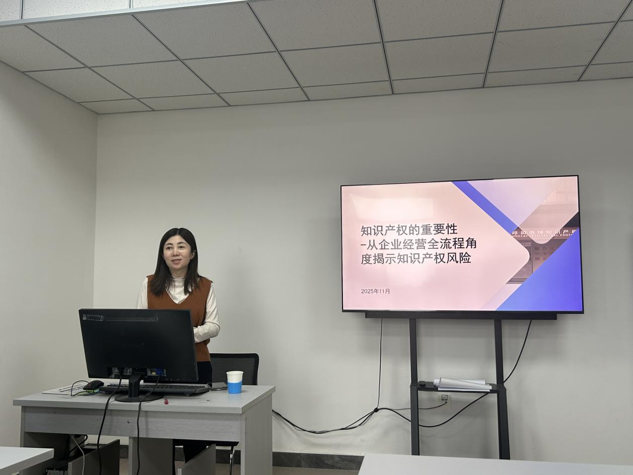 授课中,李艳法官以“企业经营全流程”为核心脉络,将自身丰富的审判实践经验转化为鲜活教材,结合多起真实知识产权纠纷案例,系统拆解风险生成逻辑与防控关键。她从企业初创及技术研发的源头环节切入,详解专利布局策略、职务发明归属界定、技术秘密保护要点;延伸至采购生产环节,聚焦供应链知识产权担保约定、生产工艺侵权风险规避等实操问题;再到市场推广场景,围绕商标规范使用、广告宣传中的著作权合规、线上线下侵权监测等内容展开分析;进而针对对外合作与投资中的保密协议签订、合作成果归属划分、知识产权价值评估等核心议题给出指引;同时强调日常管理中商标续展、专利缴费等“程序性权利”维护的重要性,最后解读国际化布局下跨境知识产权注册流程与不同地域规则的适配技巧。整个授课过程始终贯穿“理论指引实务、案例印证规则”的核心思路,通过企业的典型案例,将抽象的法律原则与具体场景相结合,让各阶段的知识产权风险点与防控方法变得直观易懂、可学可用。